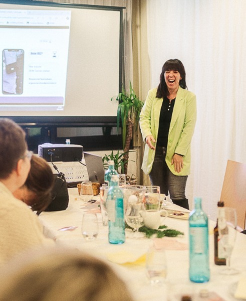 Femember Claudia Wolf gab uns wertvolle Social Media Hacks an die Hand, die besonders für Soloselbstständige von großem Nutzen sind. Zusätzlich gab es einen kurzen, aber sehr wichtigen Impuls zu den neuesten rechtlichen Änderungen, die Unternehmerinnen im Blick behalten sollten.
